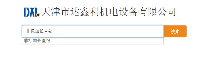 可在首页的搜索框中按商品的名称、型号和品牌进行搜索,可具体搜索,也可模糊搜索。例如:搜索“非标加长直钻”,在搜索框中键入“非标加长直钻”: